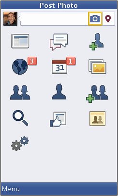 Here’s Facebook 3.3.1. In spite of the higher version number this doesn’t seem to be an upgrade to Facebook 3.3.0. Depending on which phone you visit the Facebook download site with you will either get 3.3.0 or 3.3.1. As far as I can tell the only difference between the two is that 3.3.1 lets you upload photos and 3.3.0 doesn’t. However 3.3.1 doesn’t work on nearly as many phones as 3.3.0.