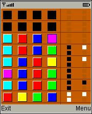 - When you have chosen colors for all the blocks in a row, press the soft key labeled “Guess”. If there is no soft key labeled Guess, press the one labeled “Menu” and choose “Guess”.